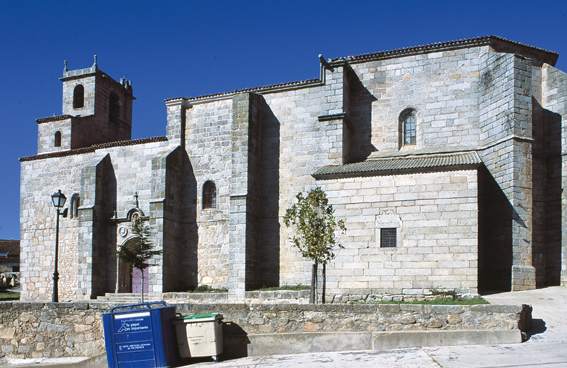 这座宏伟的教堂始建于 15 世纪,全部由花岗岩砌成。教堂外部标有三层高度,从高到低依次为主教堂、与其相切的部分和脚部。前长老区和主教堂都覆盖着复杂的高耸星形拱顶,其设计与La Fregeneda相同。这项工作可能是石匠 Pedro de Ibarra 的圆圈作品。从外部看,塔楼高居首位,简洁的体积和巨大的扶壁十分引人注目。