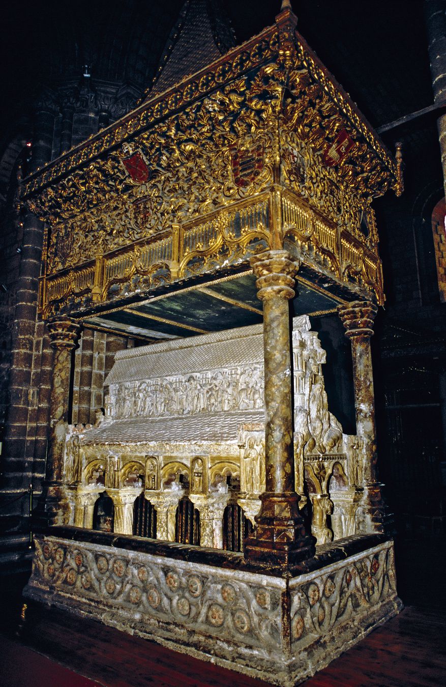 San Vicente大教堂或圣维森特烈士大教堂,是为了纪念这些兄弟而建的,他们在 4 世纪达契亚总督下令迫害基督徒期间殉难。他们的坟墓两侧讲述了他们遭受迫害和死亡的故事。