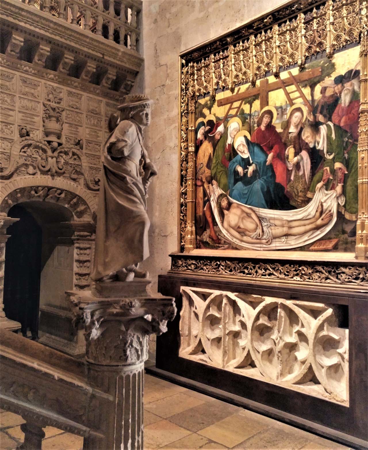 宏伟的楼梯由胡安·德·巴达霍泽尔·莫佐 (Juan de Badajozel Mozo) 建造,是游览的起点,沿途展出了穆德哈尔衣柜或莫扎拉布对句经等杰出作品。沿着这条路线,胡安·德·朱尼 (Juan de Juni)、恩里克·德·阿尔费奥·尼古拉斯·弗朗西斯 (Enrique de Arfeo Nicolás Francés) 等著名艺术家的作品与更通俗的作品共存——但并非最不重要——例如,罗马式房间中的圣母像组,是该国最好的中世纪雕塑作品之一。