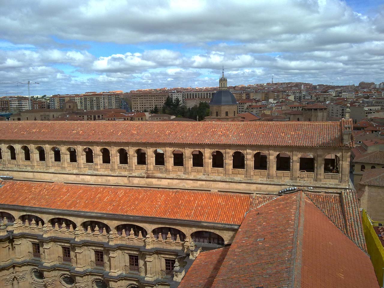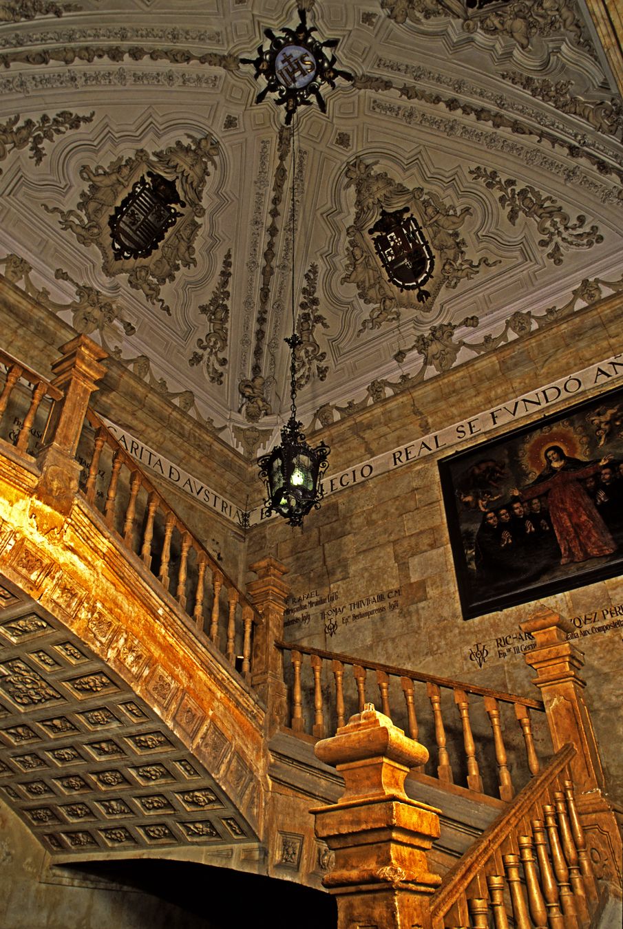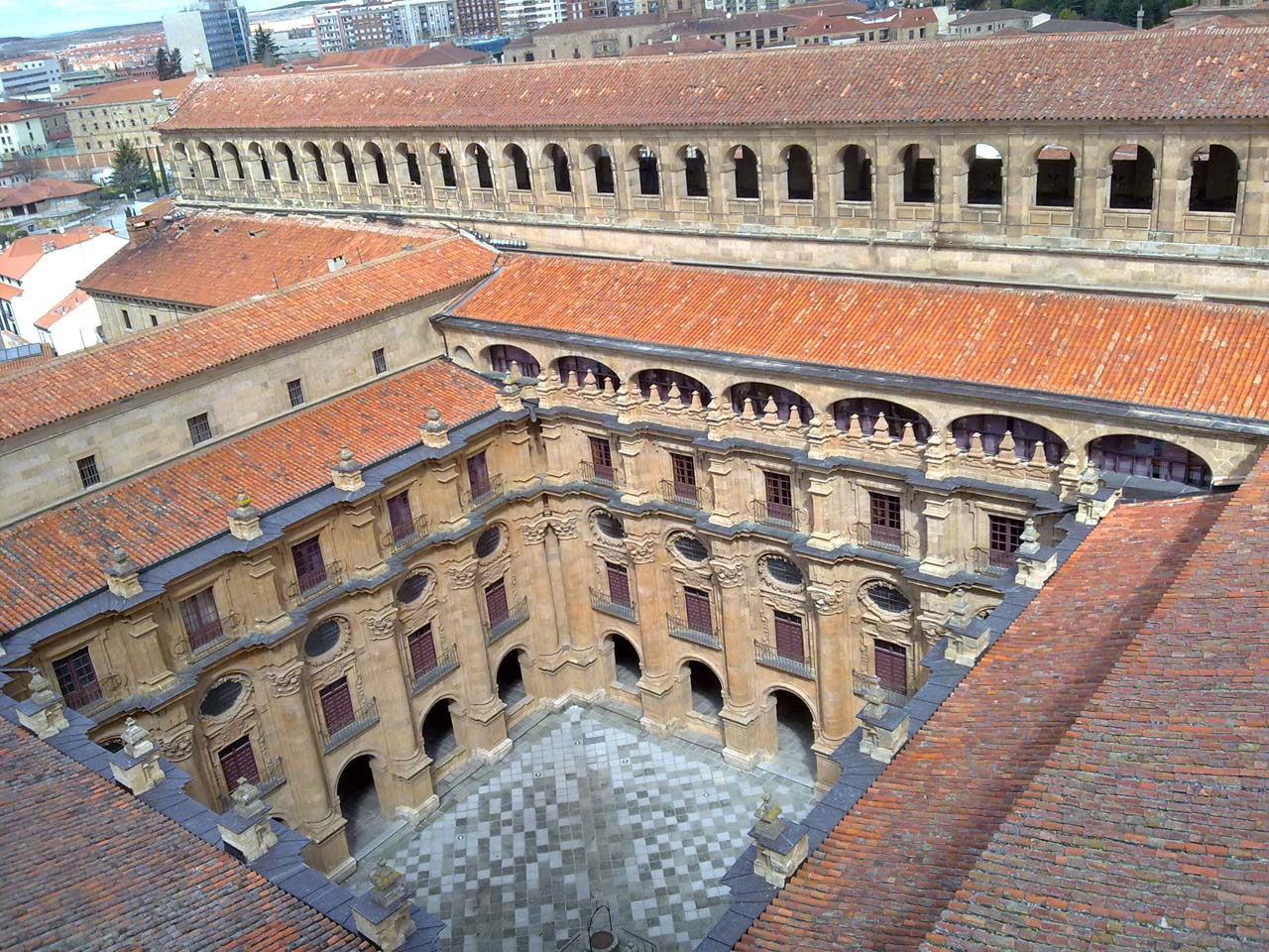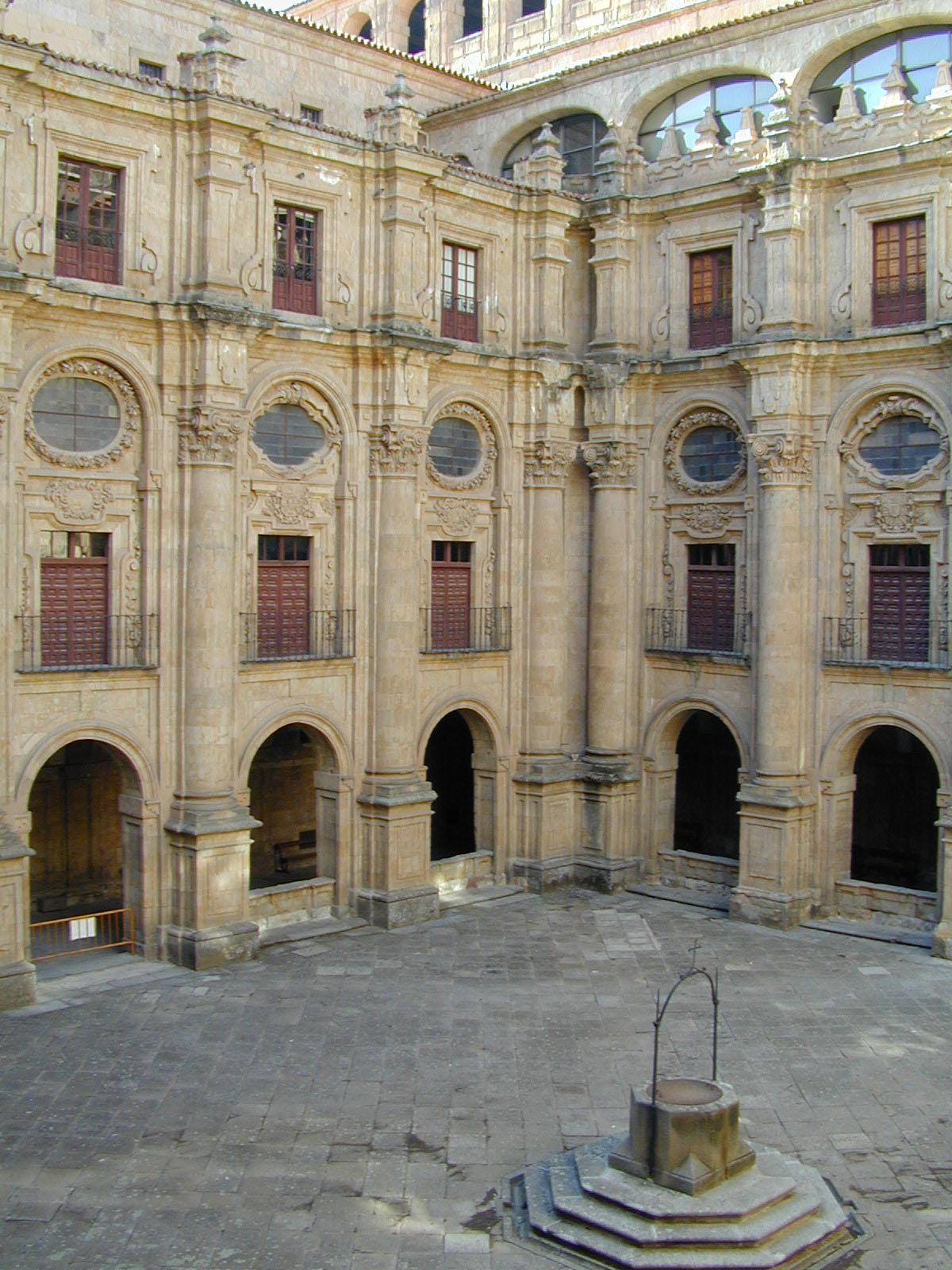 萨拉曼卡天主教私立大学自 1940 年起坐落在耶稣会皇家学院内,该学院由奥地利王后玛格丽特(菲利普三世的妻子)于 1611 年创立。这座宏伟的建筑占地面积巨大,因为为了建造它,不得不摧毁几座房屋、一座宫殿和一座教堂。 1617 年 11 月 12 日奠基第一块石头,国王委托伟大的建筑师 Juan Gómez de Mora 制定计划。整个建筑呈现 U 形平面图,长边是展馆,顶部是其特有的画廊。宏伟的研究回廊引人注目,它是由 Andrés García de Quiñones 于 18 世纪建造的,他使用了巨大的柱子顺序以及几何开口与其他椭圆形开口的交替,边缘是多肉植物的冠冕。