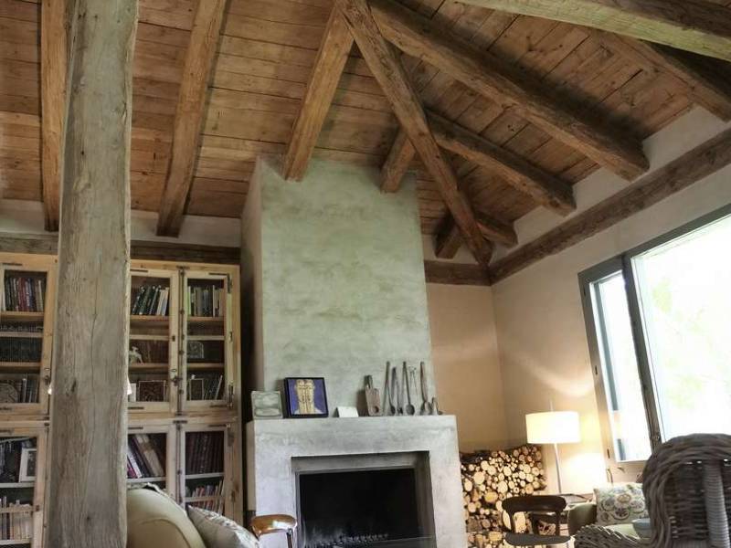 房子围绕着一个小型有顶露台,露台上种满了植物,周围环绕着明亮的画廊。它有一个客厅,里面有一个图书馆,可以坐下来,享受壁炉,听音乐,阅读,一个活动和庆祝活动的房间,可容纳 20 人,还有第三个游戏室。室外区域顶部是一个宏伟的木制门廊,视野无与伦比,与乡村融为一体。建筑在建造过程中试图最大限度地实现可持续性,并回收旧建筑的材料。