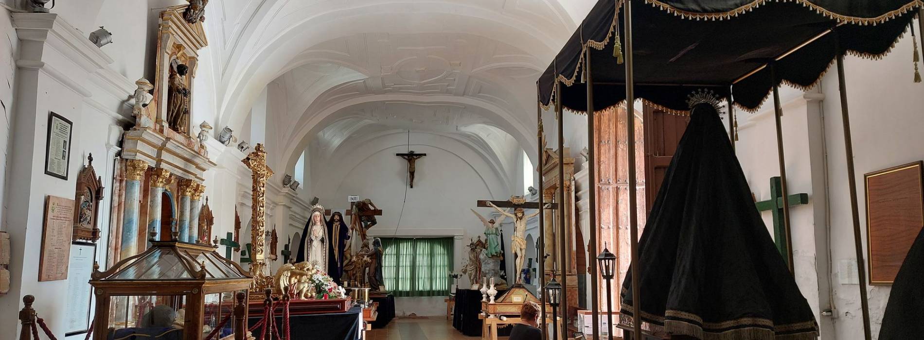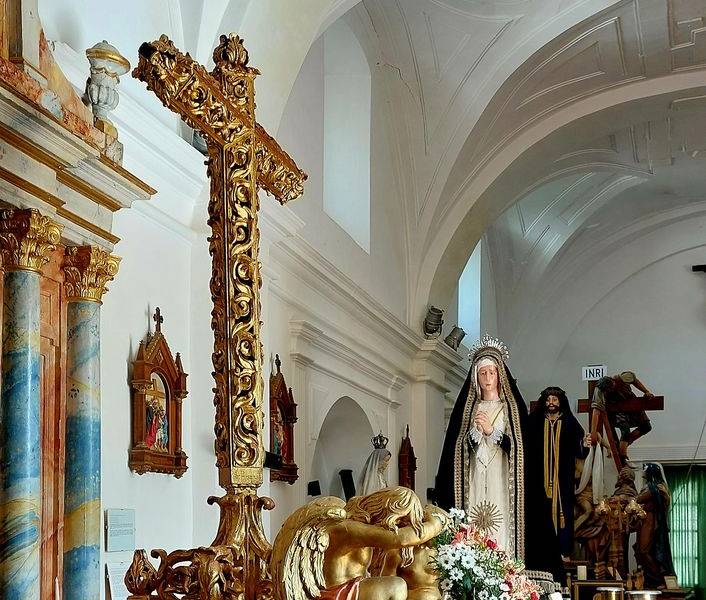 - 圣十字架,17 世纪的匿名作品。在圣周二、周四和周五,这幅维拉克鲁斯兄弟会的圣像被抬着乘坐马车,车上有两位崇拜的天使。