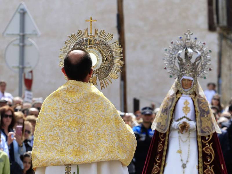 圣周期间举行的一系列游行和礼拜活动最终以一项几乎独一无二的传统达到高潮:天使游行。这种象征基督复活的仪式在整个西班牙只有两个地方举行,分别是Aranda de Duero和纳瓦拉河畔图德拉。有 18 世纪的文献记载了这一仪式,但它肯定更古老,与其他宗教仪式一样,可以追溯到特伦托会议之后的冲动。
