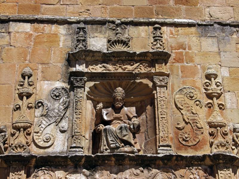 地面分布是典型的西班牙罗马式修道院。回廊是修道院的关键元素。回廊由方石砌成,双拱门上有拱廊,拱廊间有柱子和小柱子。