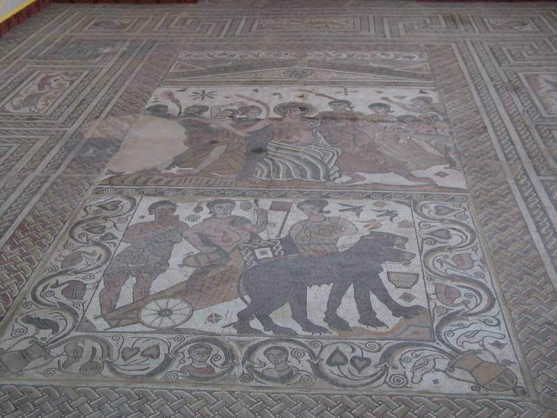 在这些遗迹中,有三幅 4 世纪的马赛克被保留了下来,其中最引人注目的是酒神马赛克。