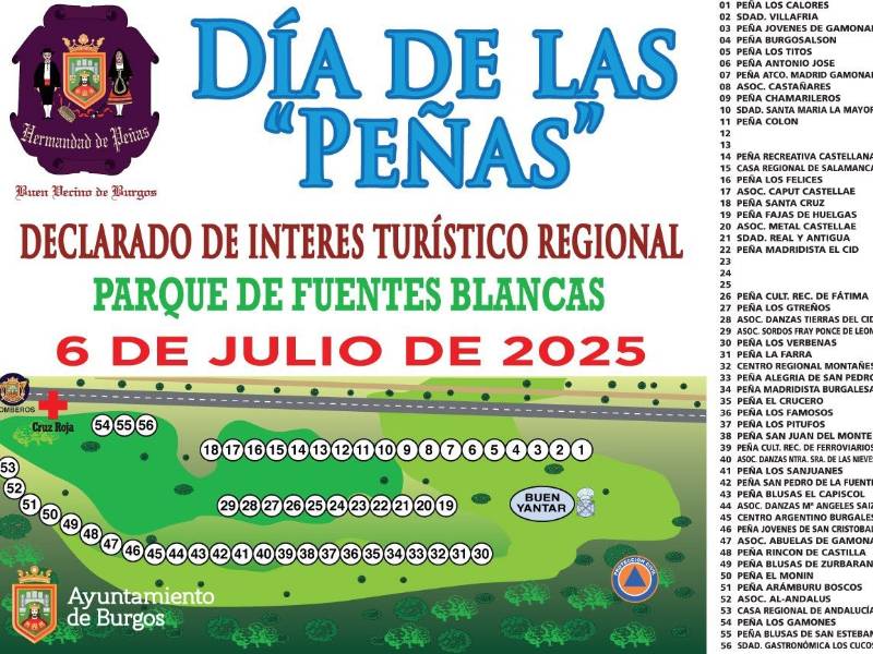 标志着布尔戈斯守护神节的结束。该节日已被宣布为卡斯蒂利亚-莱昂的旅游胜地。每年,数千人都会聚集在距市中心约五公里的 Fuentes Blancas 公园,举行"怀念行动",缅怀所有远离家乡的布尔戈斯人。