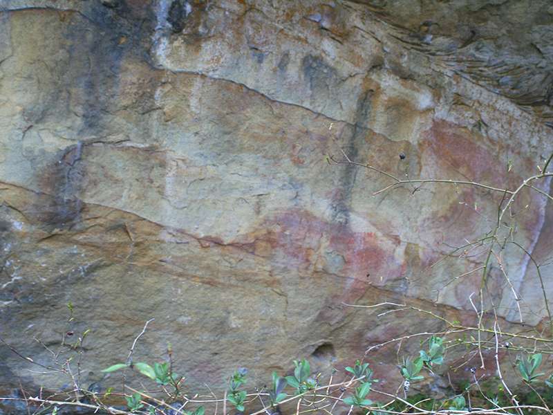 它们是位于 Cueva Grande 的岩画,岩画中有一个巨大的线状图形,似乎是用点线和虚线绘制的人形。另一方面,你可以看到不同图案和大小的垂直线,这表明其中一些可能代表了人物。
