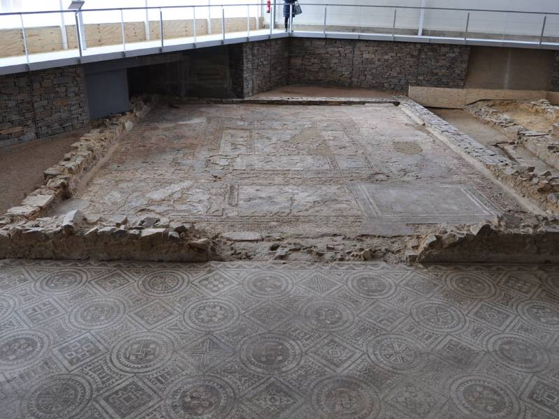 今天参观的这个遗址可能相当于这座建筑的三分之一。通过观察旧附属建筑的遗迹和马赛克,我们可以确定这个城镇的生活,但没有发现像其他遗址那样的陶瓷或硬币,因此人们认为这个城镇是逐渐被废弃的,因为不知道它被废弃的确切原因。