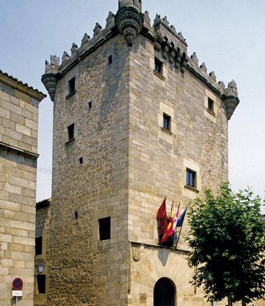 这是一座高大的防御塔,有城垛,入口后有一个文艺复兴式庭院。今天,这里是省议会的办公室。