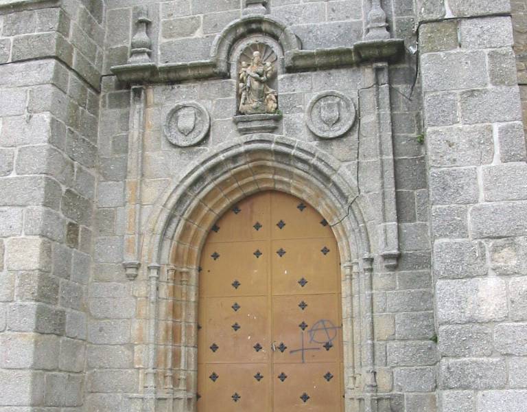 这座宏伟的教堂始建于 15 世纪,全部由花岗岩砌成。教堂外部标有三层高度,从高到低依次为主教堂、与其相切的部分和脚部。前长老区和主教堂都覆盖着复杂的高耸星形拱顶,其设计与La Fregeneda相同。这项工作可能是石匠 Pedro de Ibarra 的圆圈作品。从外部看,塔楼高居首位,简洁的体积和巨大的扶壁十分引人注目。