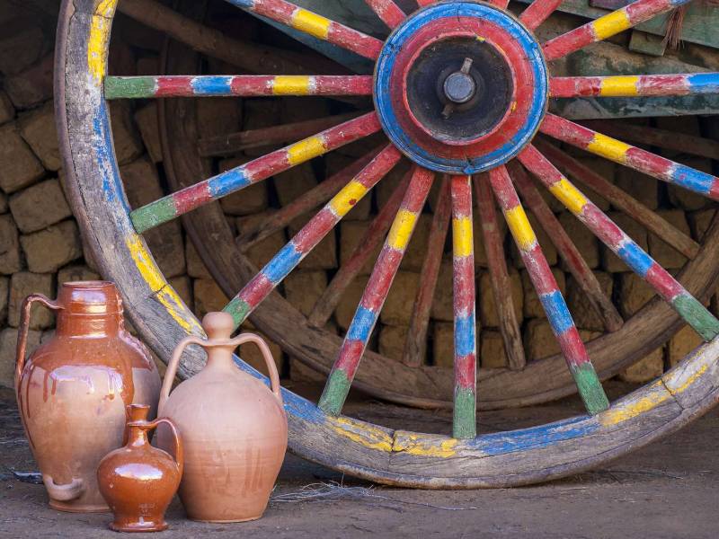 在阿尔法尔博物馆,从泥地中提取粘土、干燥、敲打和揉捏泥土的过程都是按照历史模式进行的,或者使用传统车床制作陶罐,重现了为 Jiminiesgos 陶工带来巨大声誉的传统作品。